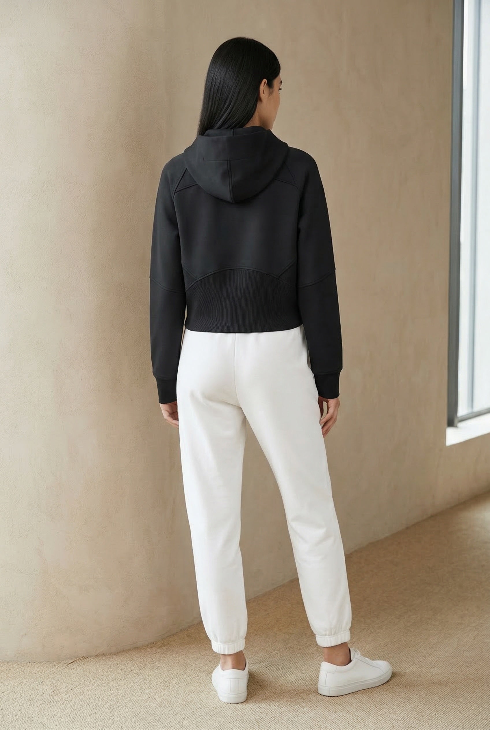 Crafted from a 320 gsm fabric with a thick feel, this material offers softness, structure, and a smooth finish. Designed to contour the body comfortably, it creates a sleek silhouette with a sporty, everyday attitude that feels both flattering and effortless.